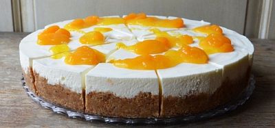 130g — Sladký keksíkový korpus s jemným smotanovým krémom s veľkými kúskami mandariniek dozdobený hustou mandarinkovou polevou.1,7