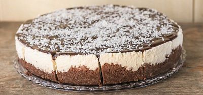 130g — Lahodný jogurtovo-smotanový krém na sladkom keksíkovom korpuse poliaty čokoládou a posypaný kokosom.1,7