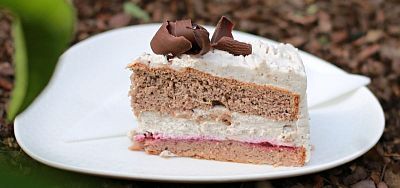 120g — Čokoládový korpus s čerstvými banánmi a lahodným parížskym krémom, poliaty čokoládovou polevou.1,3,7