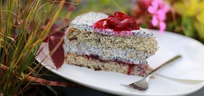 130g — Ľahký korpus s makovými semienkami naplnený sladkým smotanovo-makovým krémom a poliaty sviežou višňovou polevou.1,3,7