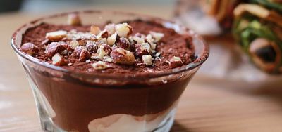 160g — Tiramisu s pravou Nutellou, smotanovým krémom a piškótami, posypané drvenými lieskovými orieškami.1,3,7,8